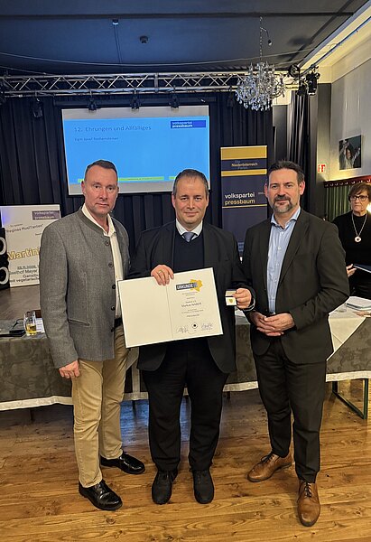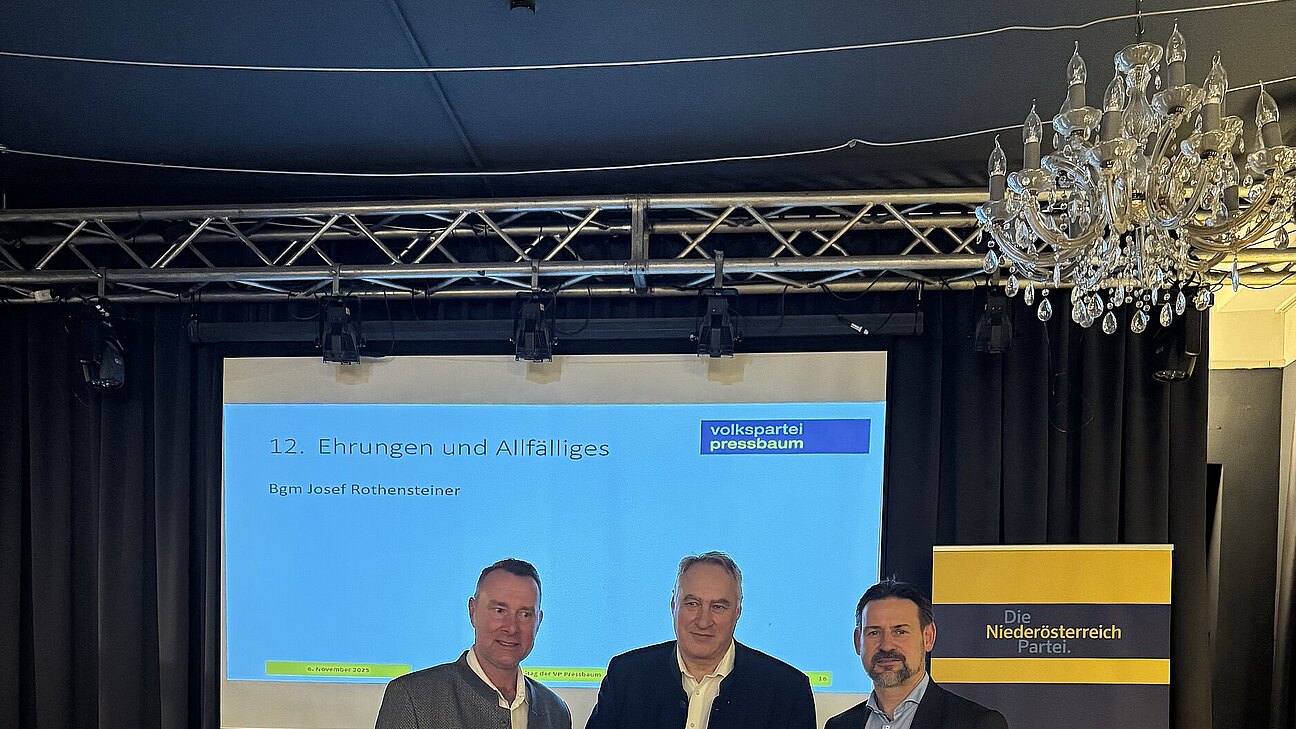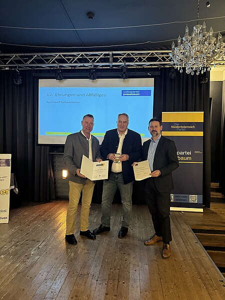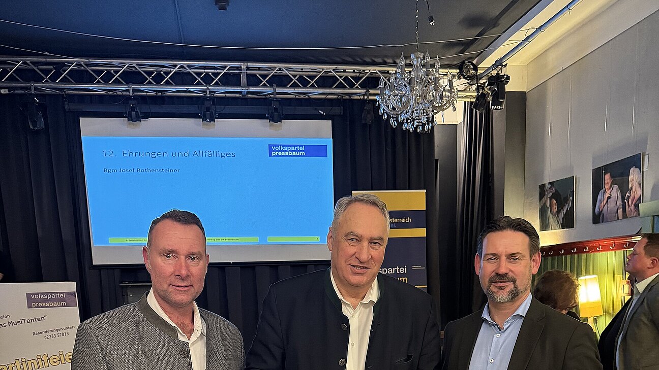 Unter Anwesenheit von Nationalrat Friedrich Ofenauer und Simon Obermayer wurde Bürgermeister Josef Rothensteiner beim Stadtparteitag der Volkspartei Pressbaum mit großem Vertrauen – 100 Prozent der Stimmen – zum neuen Stadtparteiobmann gewählt.