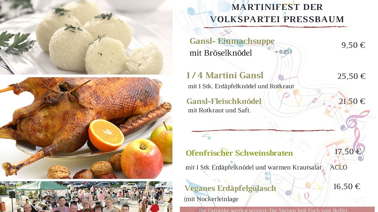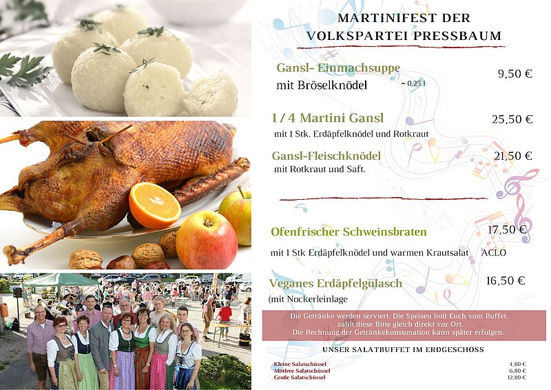 Die Speisekarte für die Martinifeier beim Gasthaus Mayer am Sonntag den 23.11.2025